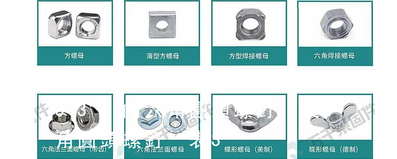 (二)、馬車螺絲/圓頭方頸螺栓(CarriageBolts):ANSI/ASMEB18.5;DIN603;ISO8677;GB12;GB14(三)、內六角螺栓(Hexagonsocket-headcapscrews):DIN912;GB70;ISO4762;ANSI/ASMEB18.3(四)、六角木螺絲(HexagonHeadLagScrews):ANSI/ASMEB 螺母依據屬性主要有國標(GB)、德標(DIN)、國際標準(ISO)、日標(JIS)、美標(ASTM/ANSI)等標準。其中、國標、德標、日標用M表示(例如M8、M16),美制、英制則用分數或#表示規格(如8#、10#、1/4、3/8)。