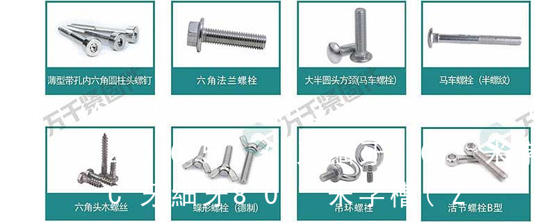 1、Flat:平頭 (鎖入后,頂部與工作件齊平)2、Oval:色拉頭、O頭、半沉頭 3、Round:圓頭 4、Pan:圓扁頭 5、Truss:大圓扁頭 6、Hex:六角頭 A-5:Finish Code/外觀處理。公制自攻螺絲 :于品名后方直接標示 Tapp 特殊用途螺釘例如有吊環(huán)螺釘等供吊裝零件用。4. 螺母:帶有內螺紋孔,形狀一般呈顯為扁六角柱形,也有呈扁方柱形或扁圓柱形,配合螺栓、螺柱或機器螺釘,用于緊固連接兩個零件,使之成為一件整體。5. 自攻螺釘:與機器螺釘相