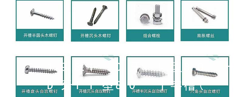 (鐵板牙自攻螺絲) B-2: Plastic Tapping Screw. (塑膠用,自攻螺絲) C: Wooden Screw : 木工螺絲 D: Drywall Screw :水泥墻螺絲 E: Self Drilling Screws鉆尾螺絲(不銹鋼鉆尾螺絲,復合材料鉆尾螺絲) F:膨脹螺絲,四片膨脹螺絲又