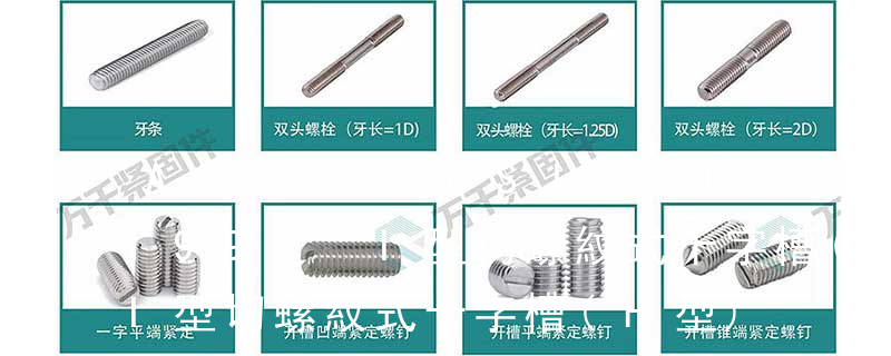 1. 內六角平端緊定螺釘 GB77-85(ISO4026-1977) 材料: 鋼 機械性能:33H 45H ; 不銹鋼 機械性能:A2-70 2. 內六角錐端緊定螺釘 GB78-85(ISO4027-1977) 材料:鋼 機械性能:33H 45H ; 不銹鋼 機械性能