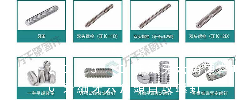 主要分類包括普通螺絲、自攻螺絲和膨脹螺絲三種。有頭螺釘Cap screw 過去限于全牙的扣件,但這現在并非標準用法。六角頭螺釘Hex cap screw與大六角螺栓Hex bolt 顧名思義為頭部為六角型的外螺紋扣件,設計為使用扳手轉動。 自切自攻螺釘有以下幾種型式:十字槽盤頭自切自攻螺釘,十字槽沉頭自切自攻螺釘。十字槽半沉頭自切自攻螺釘,六角頭自切自攻螺釘。3、自擠自攻螺釘(自攻鎖緊螺釘)自擠自攻螺釘的螺紋一般為機螺紋,很少采用自攻螺紋。在扳擰